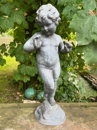 A very beautiful lead winged Angel/Putti, nice heavy piece with a lovely patina. Comes complete with a terracotta plinth.