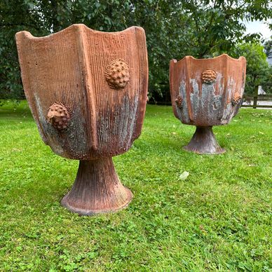 A collection of very large cast iron urns, we have five available measuring almost a meter tall by a meter diameter. £450 each.